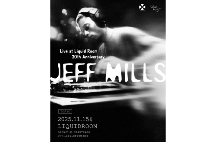 1995年にデトロイト・テクノの巨匠Jeff Millsが新宿Liquid Roomで行ったDJプレイがミックスCD「Jeff Mills – Live at Liquid Room, Tokyo」として発表され30年。それを記念したツアーの日本公演が11月14日(金)大阪JOULE、15日(土)東京LIQUIDROOMで開催することが発表された。