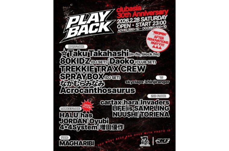 そして、今週はclubasiaがいよいよリニューアルオープンにして30th Anniversaryおめでとうございます!!!!! 渋谷で30年は本当にすごい!ここで育った人、DJ・アーティストも多いと思うし、clubasiaの歴史も振り返ってみたいな〜。あの階段から覗き見るフロアとか懐かしい。どんな形にリニューアルしているのか、ぜひその目で、その足で。