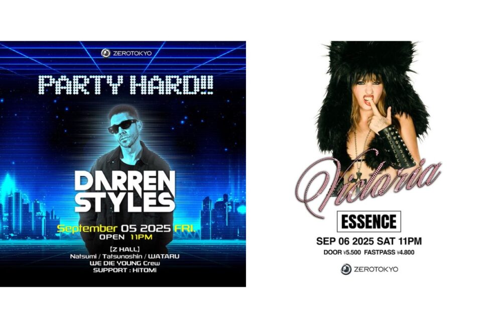 ちなみに、9月以降も勢い止まらず9月5日(金)の「PARTY HARD!!」にはDarren Styles、6日(土)の「ESSENCE」にはMÅNESKINのベーシストでありVictoriaがDJとして登場! さらに、10月3日(金)の「PARTY HARD!!」にはSub Zero Project、4日(土)の「TECHNO ESSENTIALS」にはSPACE  92、GREG DOWNEYの出演も決定している。